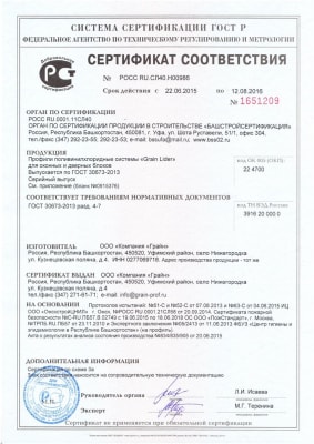 На сайте компании «Грайн» представлены все сертификаты и протоколы испытаний основных профильных систем, выпускаемых заводом Grain.