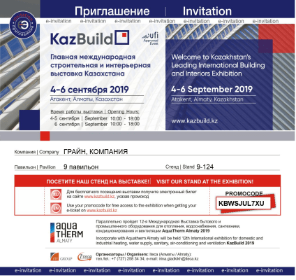 Компания «Грайн» приглашает посетить свою экспозицию на выставке KazBuild 2019, расположенную в Павильоне 9 Стенд 9-124.