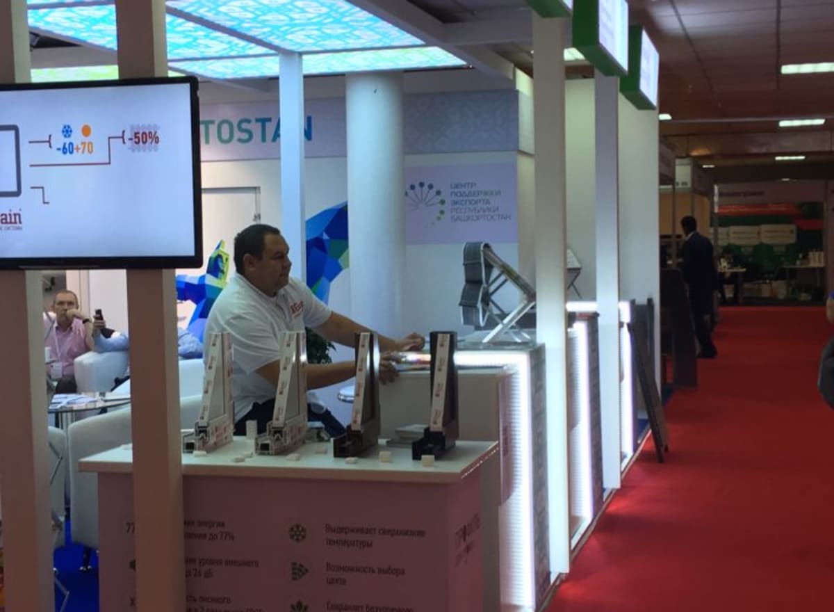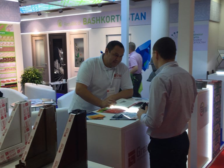 Компания «Грайн» принимает участие в выставке с коллективным стендом от Башкортостана. На стенде представлены еще четыре республиканских производителя строительных и отделочных материалов, такие как ООО «Содружество Урал», ООО «Геолайн», ООО «Абсолют Дек», ООО «Уют Салават».