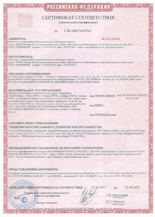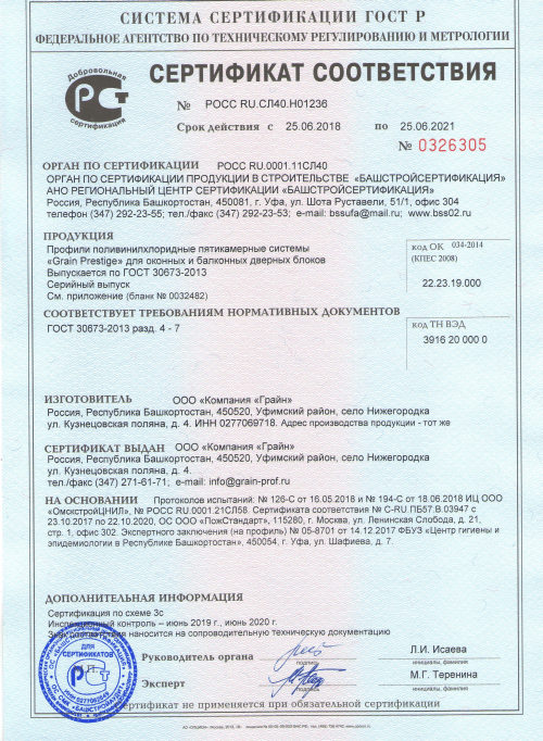 Компания «Грайн» строго придерживается принципов заботы о здоровье потребителей и защите окружающей среды. И всегда активно работает в этом направлении. Технологи завода Grain разработали новую рецептуру для ПВХ профилей на основе стеарата кальция и цинка. В июне Центр сертификации успешно провел испытания промышленных образцов профильных систем типа А — Grain Prestige и Grain Lider, произведенные на этой рецептуре, и выдал заключение на основании протоколов испытаний «Профили поливинилхлоридные для оконных и дверных блоков, ГОСТ 30673-2013», сертификатов пожарной безопасности и экспертных заключений по гигиене и эпидимиологии.