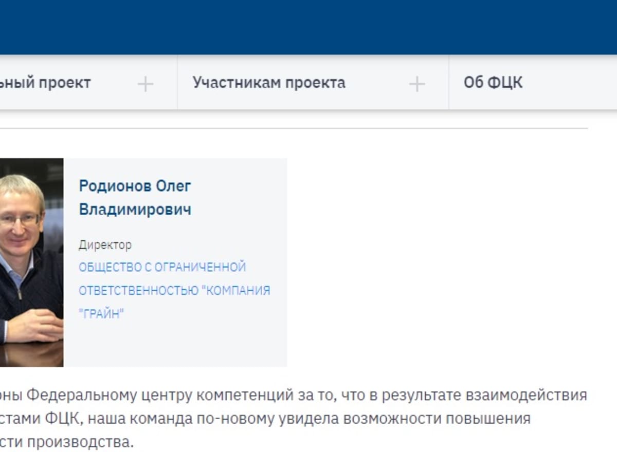Профессиональная команда специалистов, состоящая из практиков от производства и тренеров Федерального центра компетенций, дала нам базовую методологию для работы с улучшениями на производстве, благодаря чему мы увидели новые возможности, увидели, над чем нам предстоит работать», — поделился впечатлениями об участии в проекте директор Компании «Грайн» Олег Родионов. Полный отзыв о работе с АНО «Федеральный центр компетенций» читайте, кликнув здесь. Он размещен на портале https://производительность.рф
