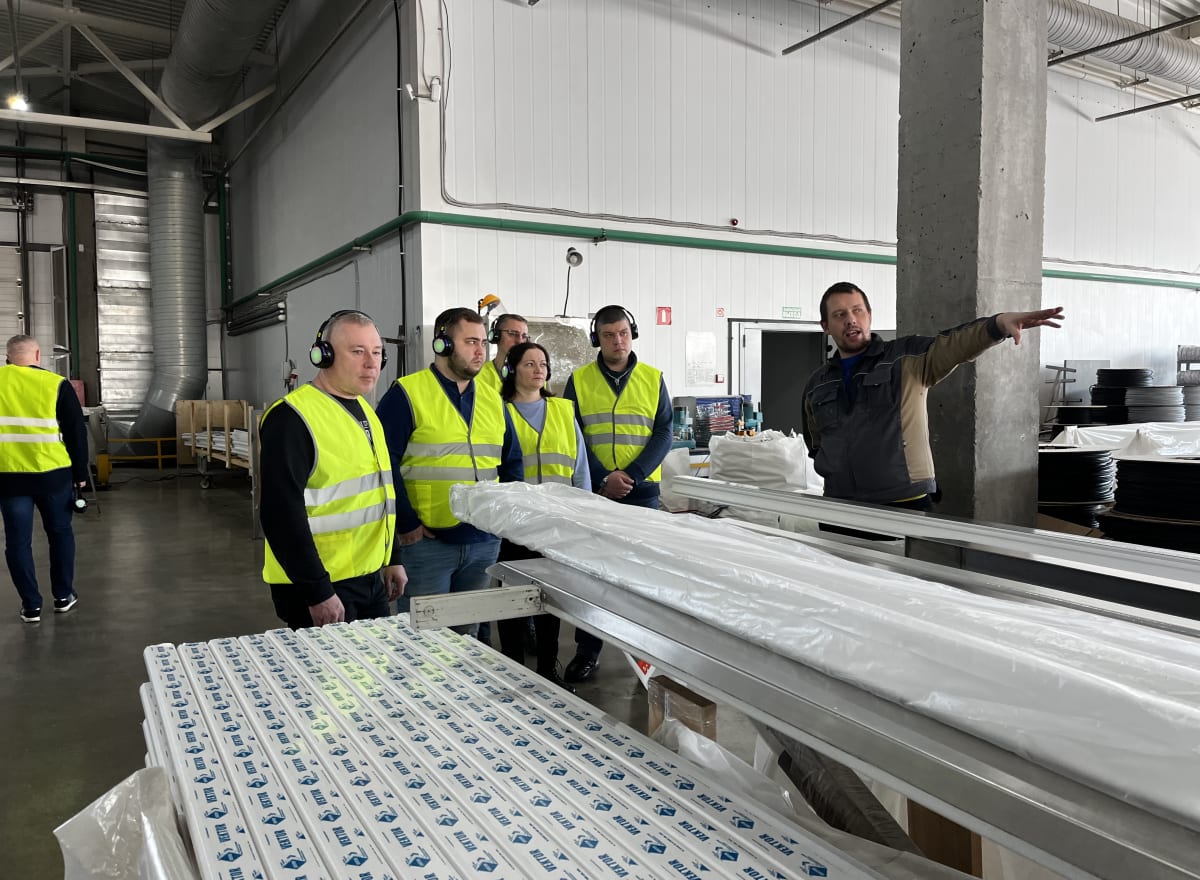 На прошлой неделе завод Grain посетили сотрудники компании «Вектор-К» из Казани, Кирова и Чебоксар. Гости побывали в цехе смешения, на экструзионных линиях и лаборатории, ближе познакомились с основными этапами производства профилей. Многие впервые видели собственными глазами процесс экструзии профилей, хотя работают в оконной отрасли более 10, а то и 15 лет.