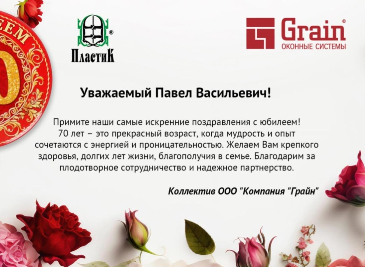 У основателя компании - одной из нашей партнёрской сети - ООО ПО "ПластиК" сегодня юбилей!